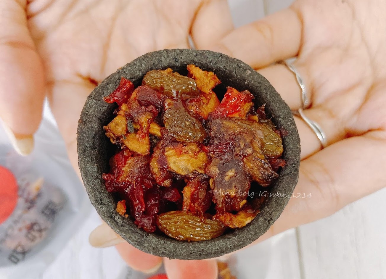 竹炭黑莓塔內有四種果乾