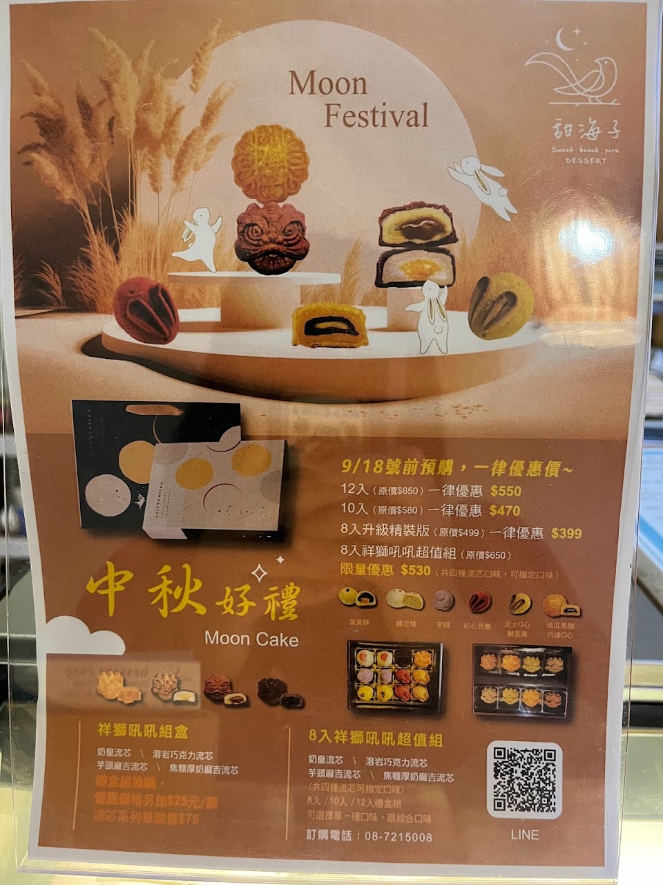 店面有販售月餅,口味不錯,店員也有給試吃,推薦芝士Q心鹹蛋黃!