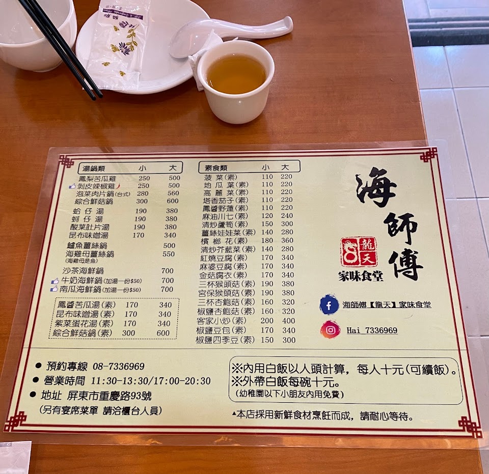 2024最新在地推薦餐廳的菜單_海師傅【龍天】家味食堂的菜單、圖片