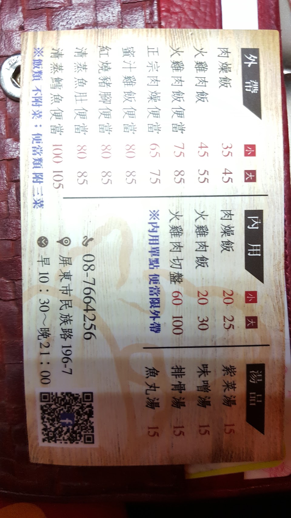 吃個飯還分外帶內用,其實蠻想點便當類型,小菜一小盤雖才20,但很不喜歡小份量然後又ㄧ直點小菜,雞肉飯也普通,整體來說不會再訪,2顆星給服務態度