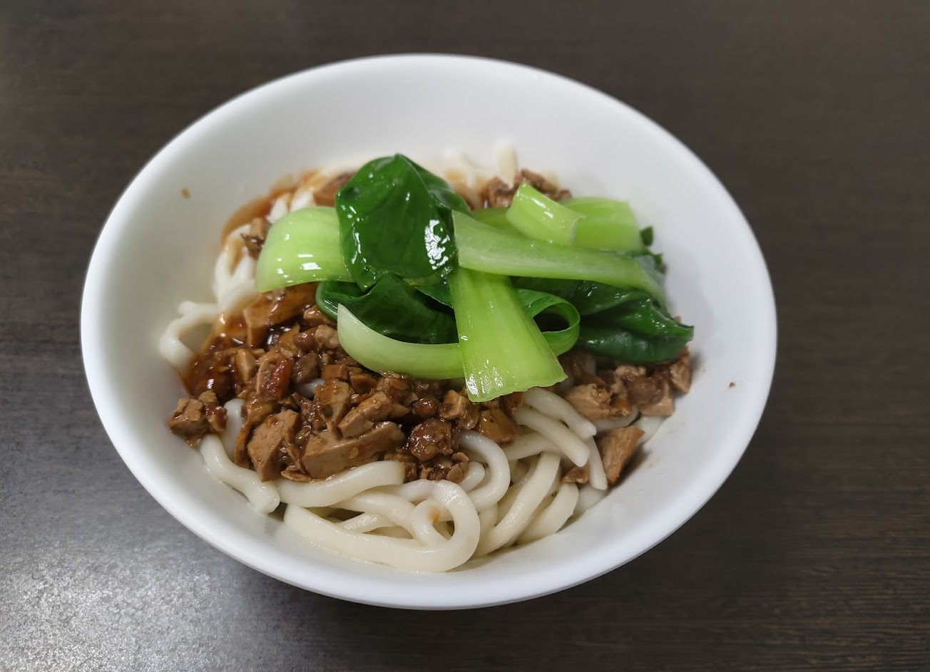 家常麵(50元)粗麵條配上獨特的醬料(微微的甜),吃起來很順