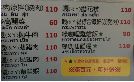 初訪,點了打拋牛肉燴飯,CP值高,牛肉好入口沒有筋,但真的辣,很過癮,建議第一次到訪的顧客降低辣度,另外菜單上有標記的餐點需要事先一天預約,別撲空了。