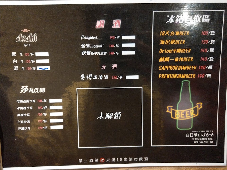 2024最新在地推薦餐廳的菜單_白日夢居酒屋的菜單、圖片