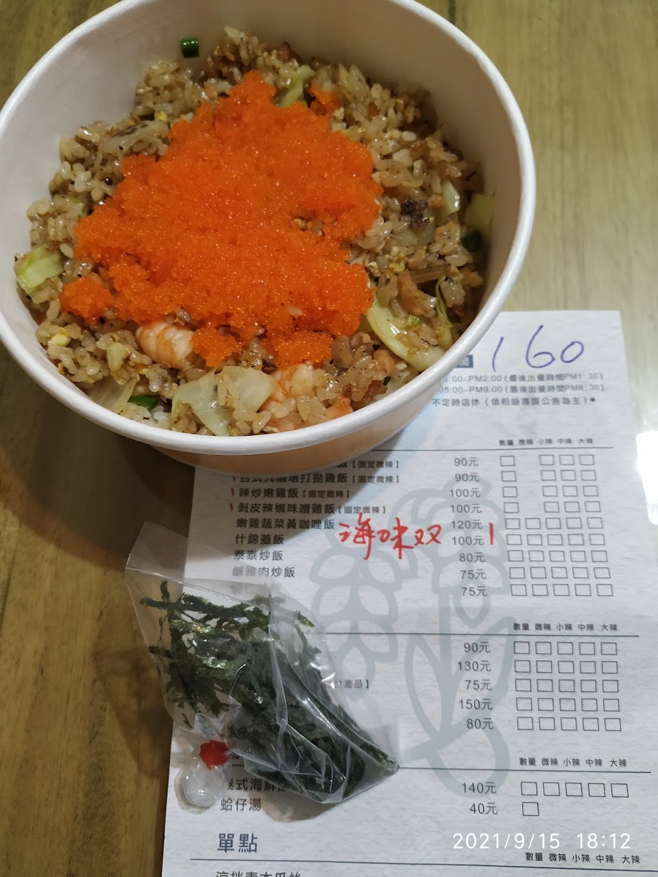 泰泰炒飯 微辣(有附一小片檸檬,酸酸辣辣的)
