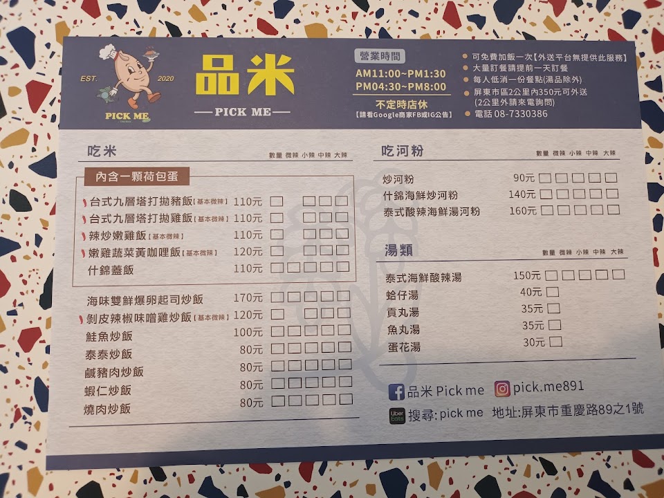 2024最新在地推薦餐廳的菜單_品米 Pick me (店休資訊請看Google 營業時間以及FB或IG)的菜單、圖片