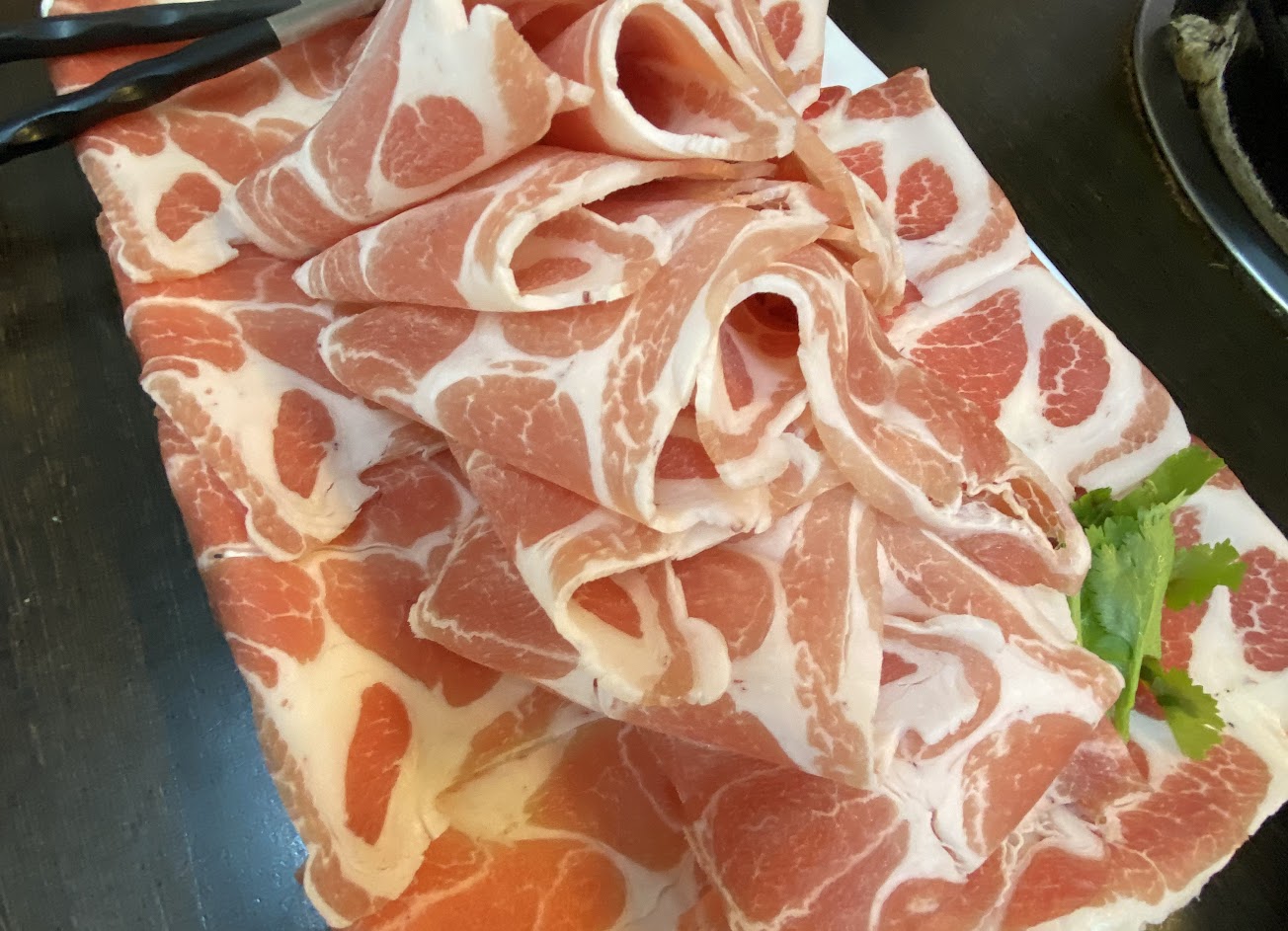 現切溫體牛夠厚且涮久也不會過老,喜歡油花多的可以點雙降牛肉,但其實一般牛肉品質就很好!牛邊角是塊狀偏硬口感型。