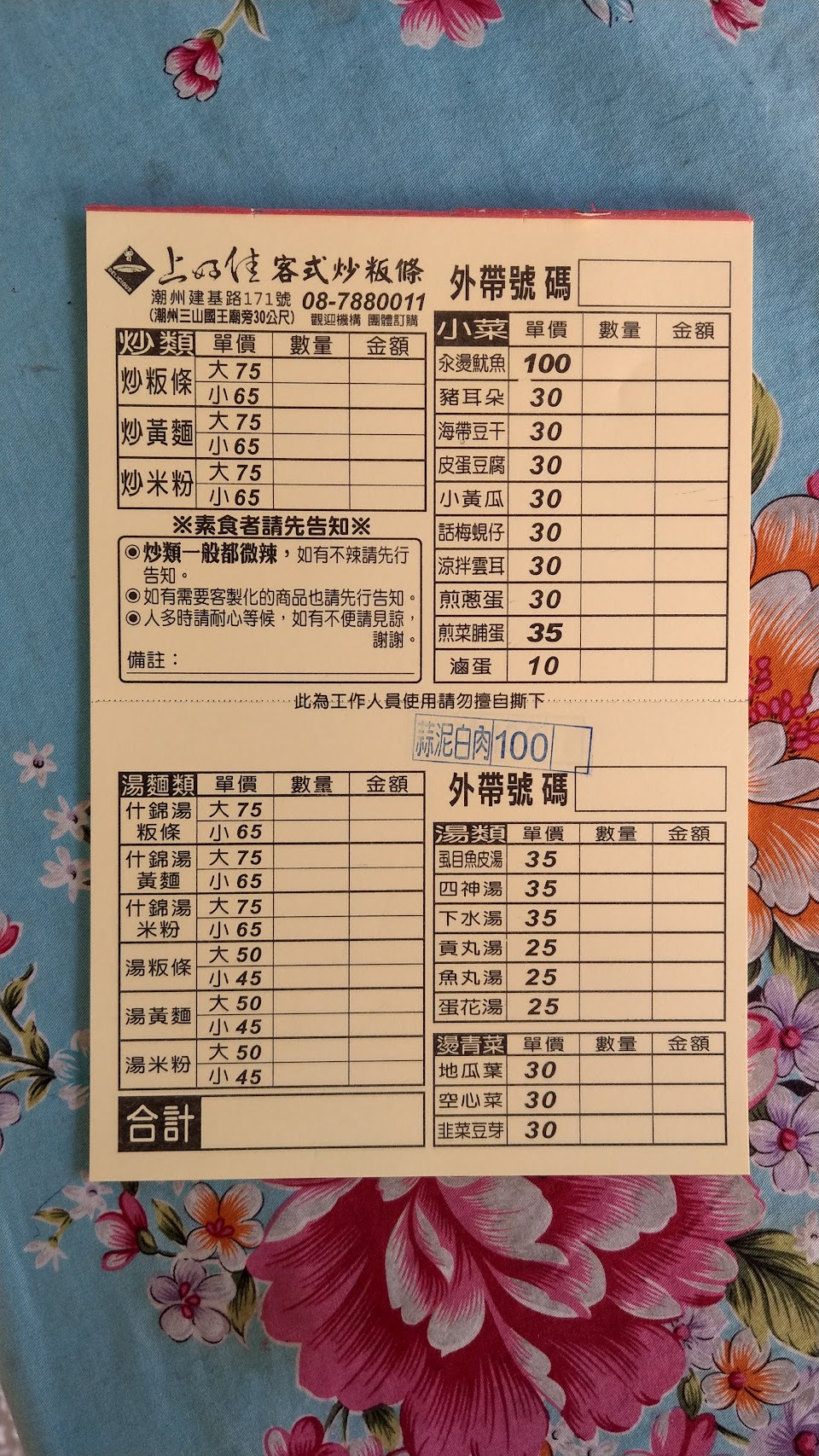 蒜泥白肉 四神湯 炒粄條