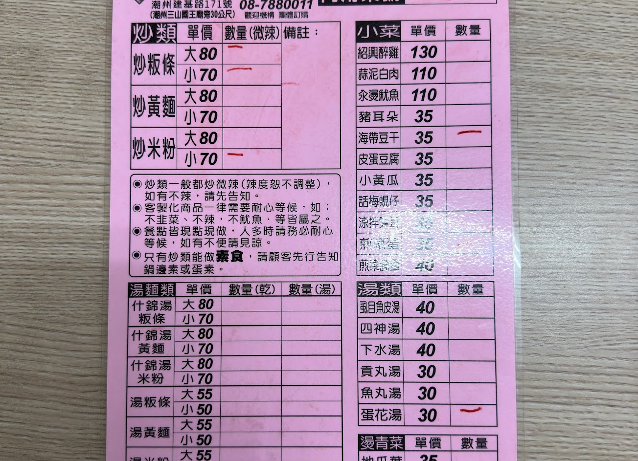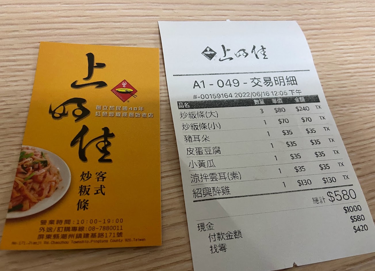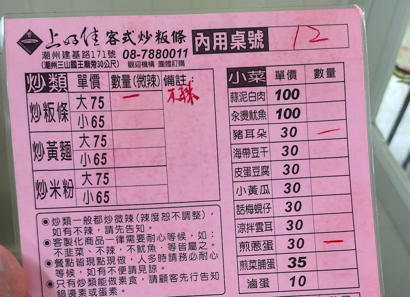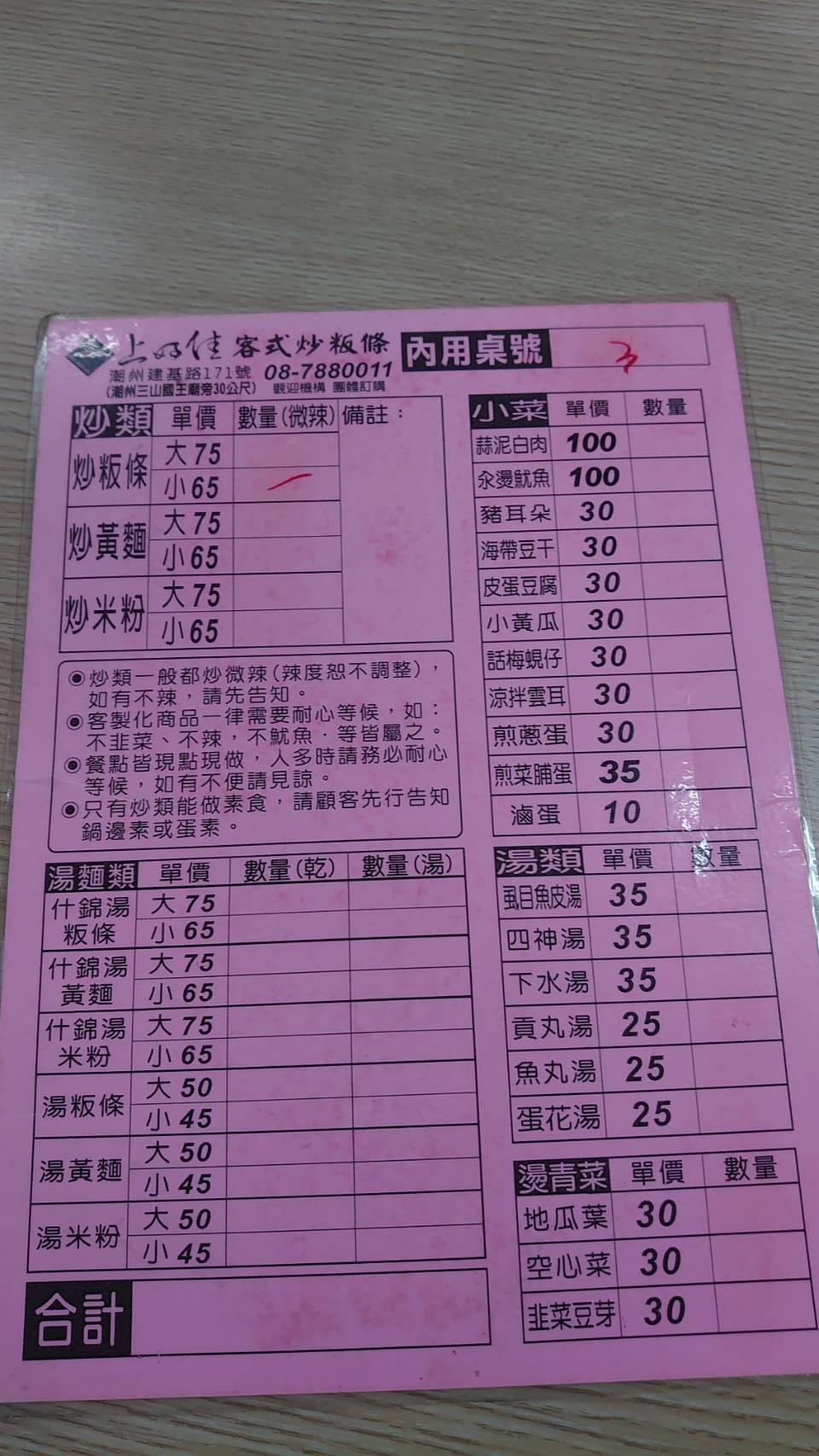 小的炒粄條,一份65元,先結帳