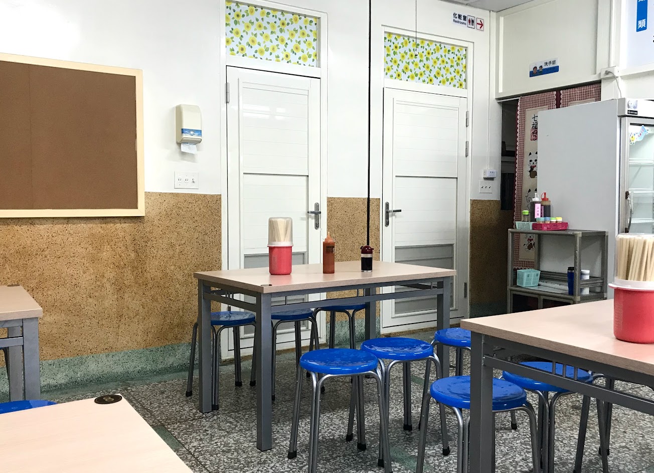 有飲水機及免費湯品,店內有冷氣