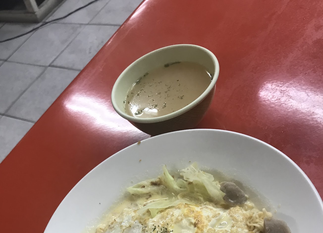 炒泡麵則建議+10元加麵 份量才比較夠 吃起來也很讚 雖然只有幾個火鍋料配一些些高麗菜 但真的好吃 隨麵附上一碗湯 但喝起來就煮泡麵用的湯而已?