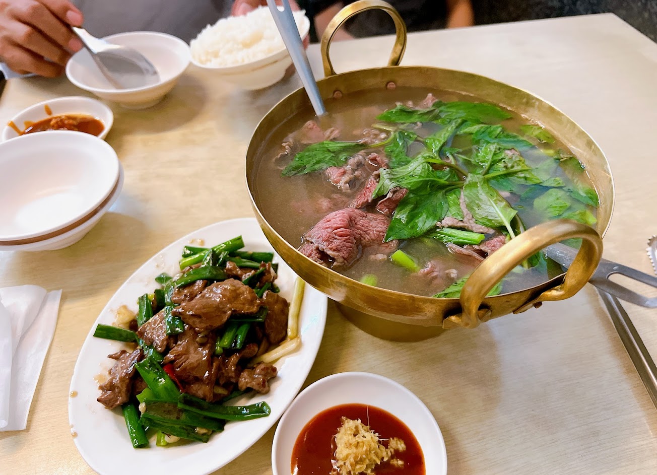 牛肉品質不錯的快炒店 點了蔥爆牛肉真的很好吃蔥脆肉嫩 燉牛肉湯 半筋半肉也很讚 湯頭很鮮甜 店家很貼心 吃到一半還會提著湯頭茶壺ㄧㄧ詢問客人是否要加湯