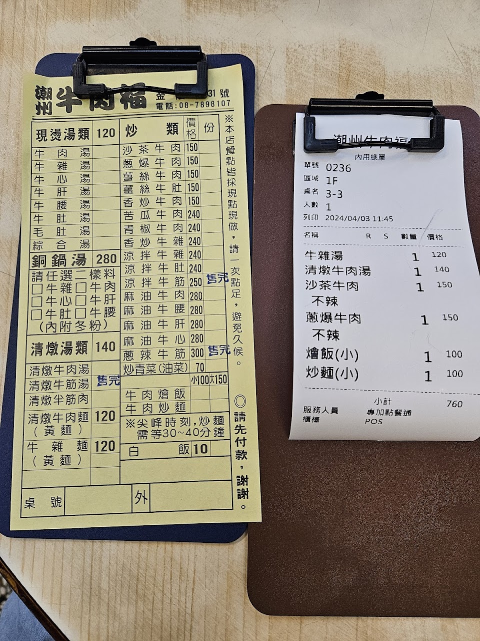 點了牛雜湯及牛肉湯,