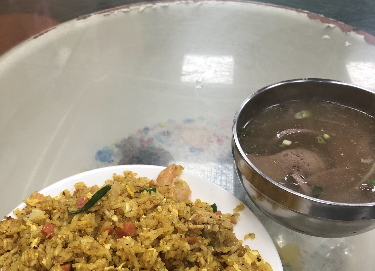 從小吃到大,炒粿條加辣。 番茄炒飯也好吃,配一碗豬血湯或豬肝湯, 100元內吃飽飽。