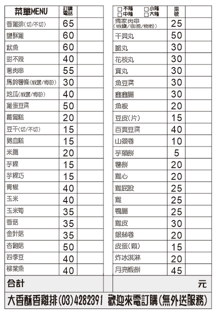 2024最新在地推薦餐廳的菜單_大香酥香雞排的菜單、圖片
