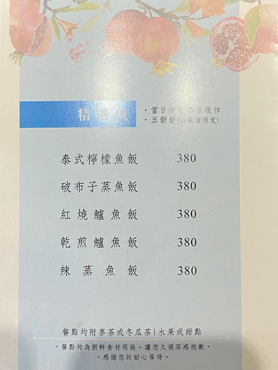 檸檬魚鮮魚套餐好吃,魚肉很青。鹹豬肉套餐,鹹豬肉味道醃的入味。鮭魚鮮魚鍋,湯頭甘甜、魚肉很青。
