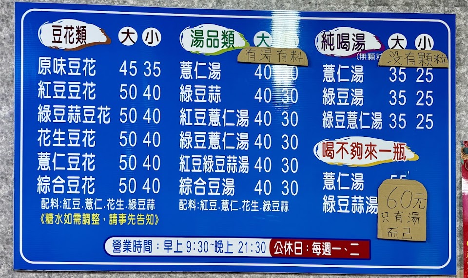 豆花系列、甜湯系列