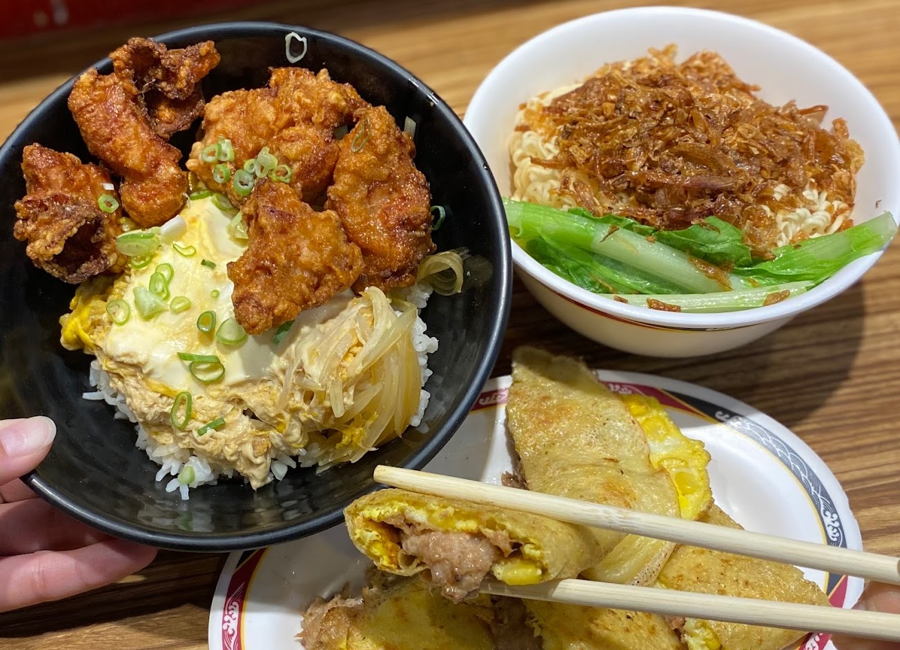 晚上十一點多來,蛋餅系列和吐司已全數售罄,只剩下泡麵類和一些炸物,招牌都沒吃到。泡麵的部分炒泡麵吃起來都不錯,油蔥那個口味滿有特色的,湯泡麵就是一般的泡麵,個人覺得還好,鮮奶茶喝起來也不錯。