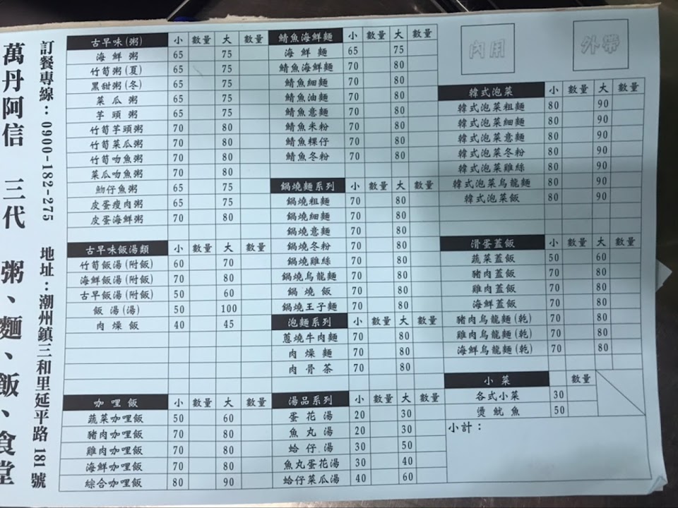 2024最新在地推薦餐廳的菜單_萬丹阿信飯湯 潮州店的菜單、圖片