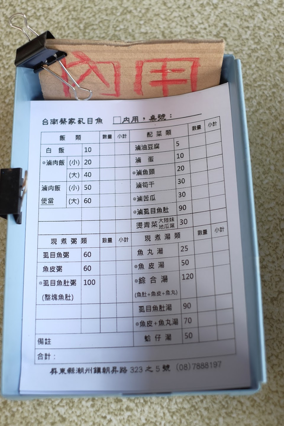 東西真的很好吃!但給4顆星的原因是內部人員太愛聊天聊到客人東西常常給錯,今天已經是第三次了,之前2次內用是比較沒差當下反應還可以換,但這次是外帶且家裡又不住潮州到家直接傻眼60元的魚皮湯變成30元的魚丸湯???