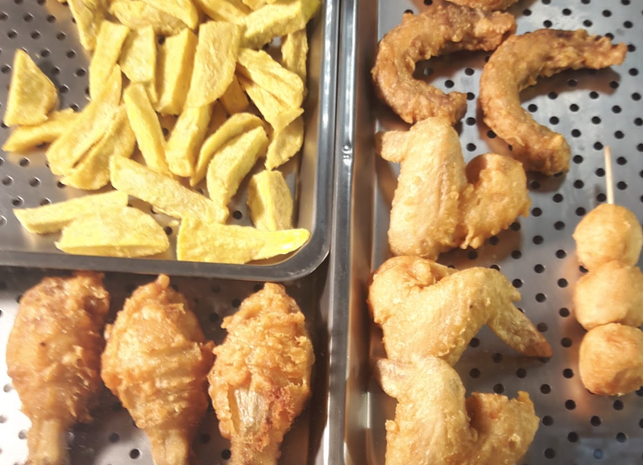 脆皮雞翅,甘梅薯條(地瓜)香雞排,超好吃的。