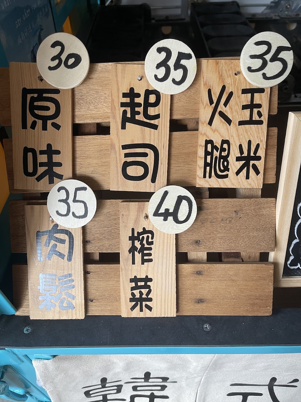 現點現做的韓式雞蛋糕,一面是一整顆雞蛋、一面是雞蛋糕,麵糊是有香味的,不是單單麵粉味;內餡超好吃,每種口味都有特色!超推榨菜和鮪魚玉米!