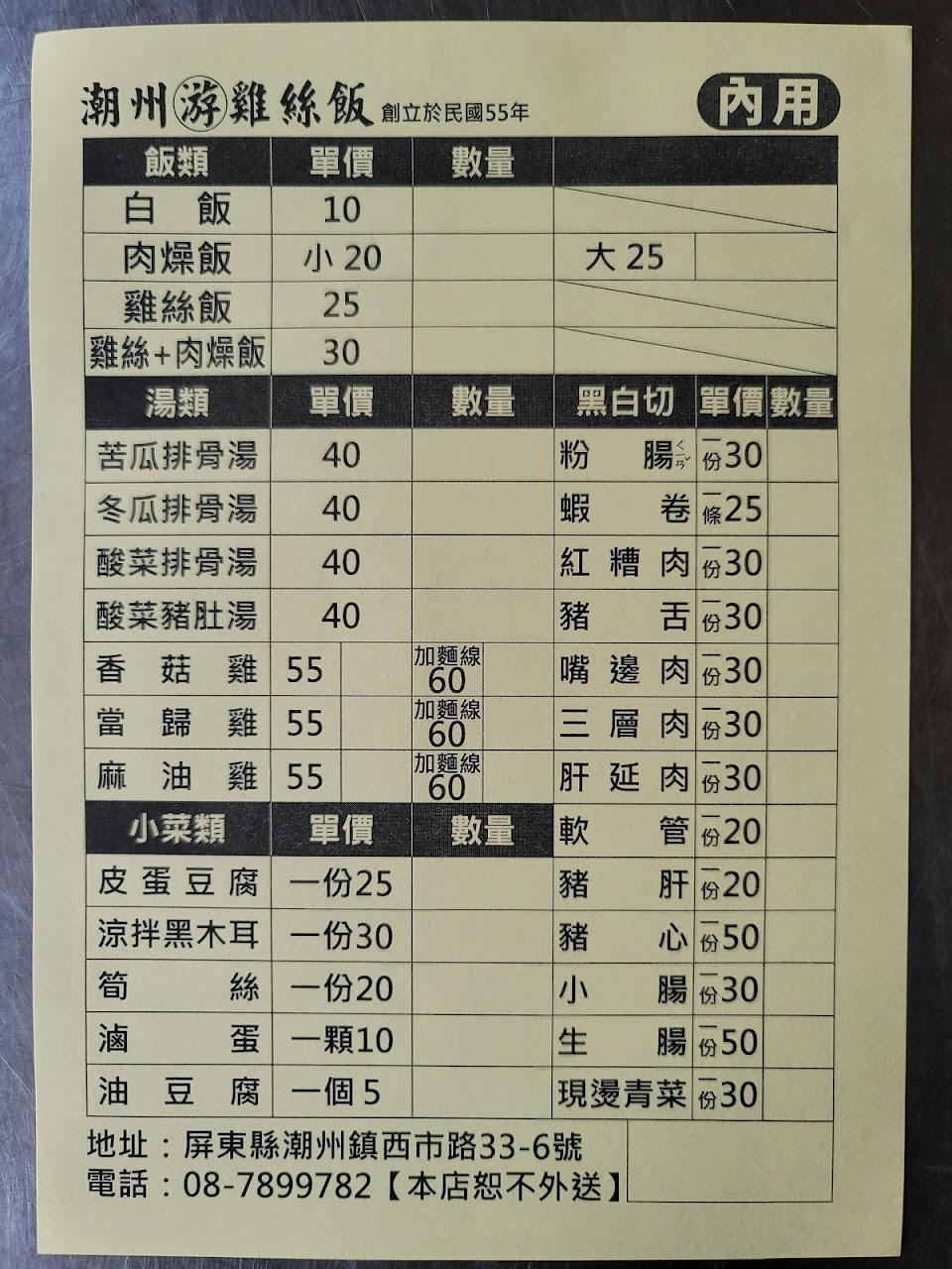 2024最新在地推薦餐廳的菜單_潮州游雞絲飯的菜單、圖片
