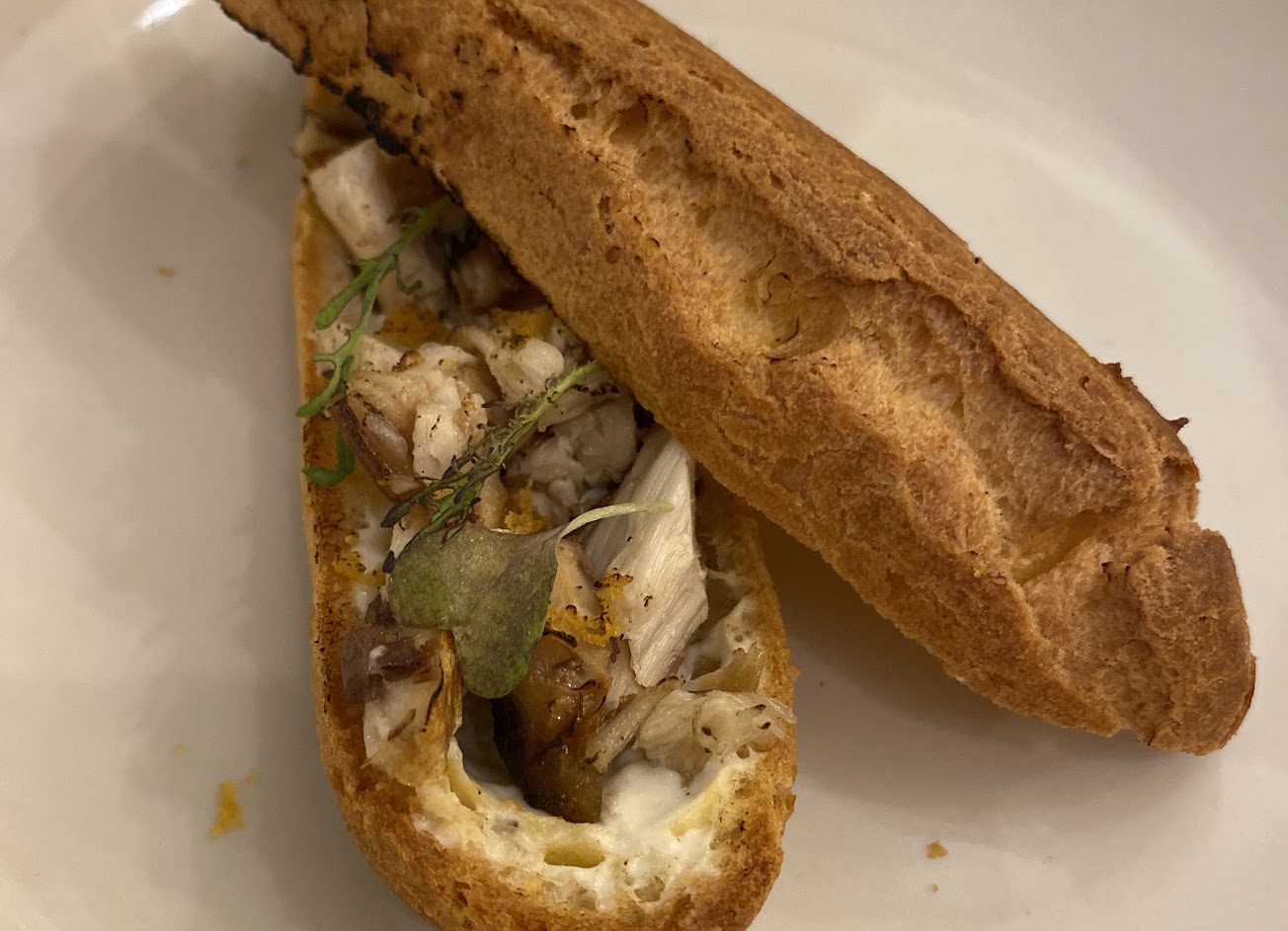 鹹的閃電泡芙很有創意,把鯖魚、吻仔魚、cream cheese與烏魚子當作餡料,不但不會太鹹,層次多元、口感綿密。