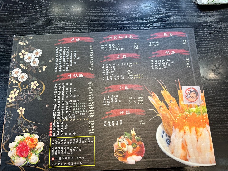 老闆很親切介紹給有選擇障礙的我們、價格平實、生魚片很新鮮我們吃的很過癮、加90元有湯和飲料還有一碟小菜、湯的魚料也很紮實、不鹹料多、建議大家可以加90元吃的很飽。