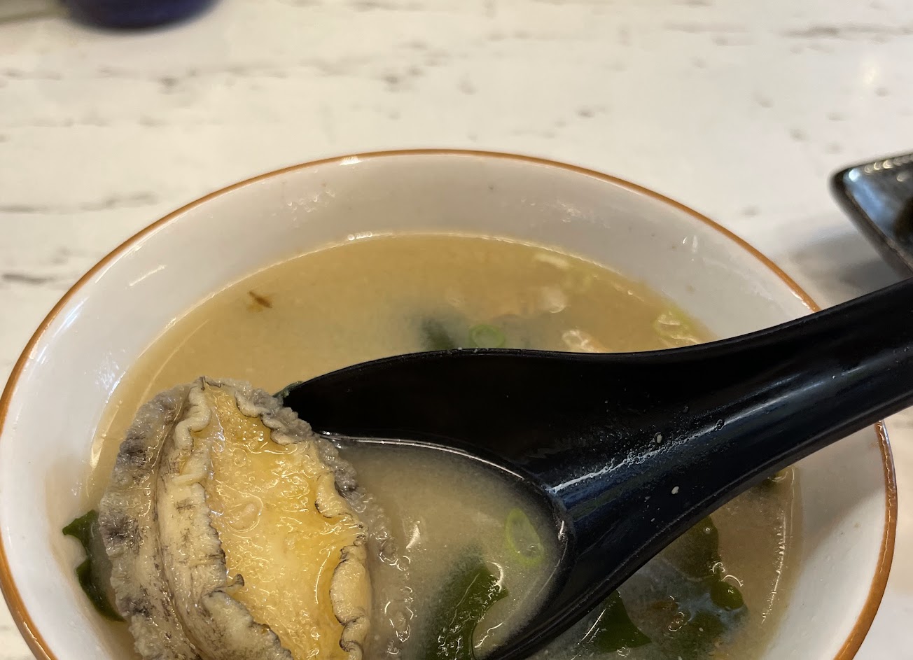 甜蝦很鮮甜,味增湯有一顆厚實的九孔,超值!