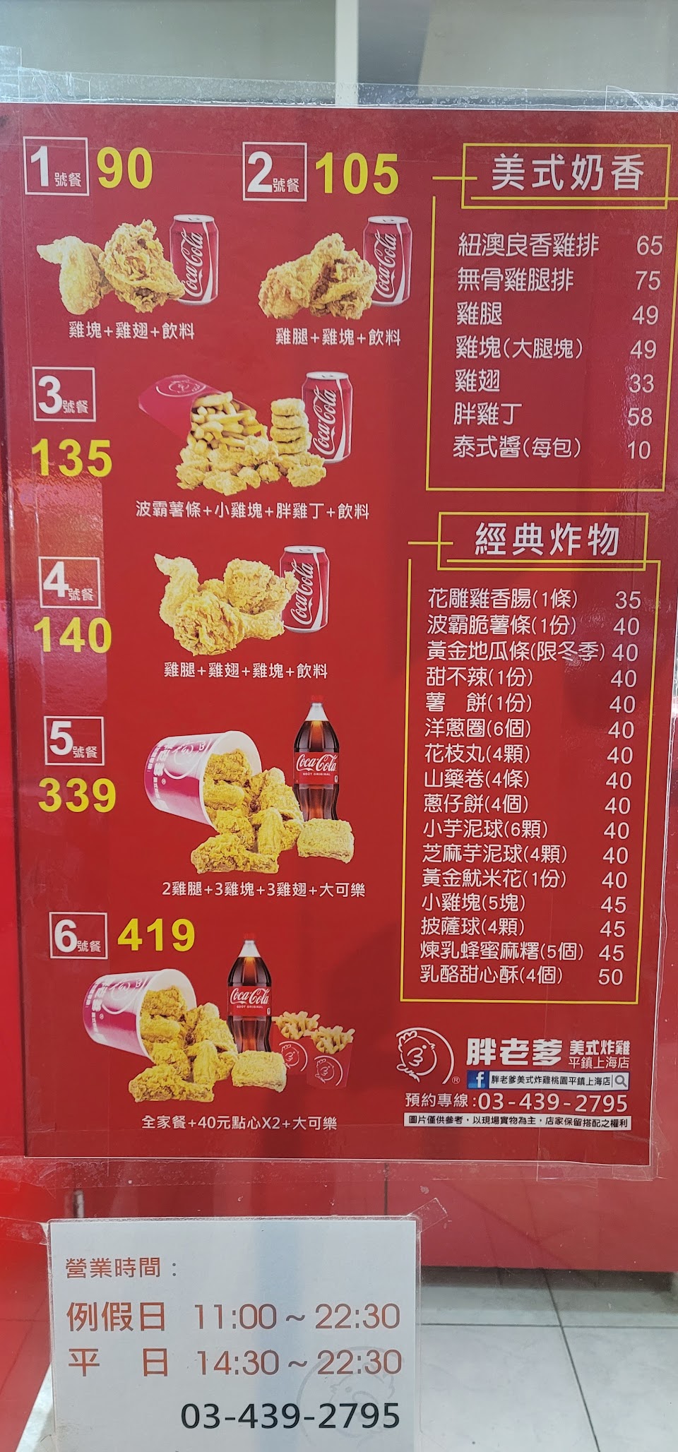 2024最新在地推薦餐廳的菜單_胖老爹美式炸雞 平鎮上海店的菜單、圖片