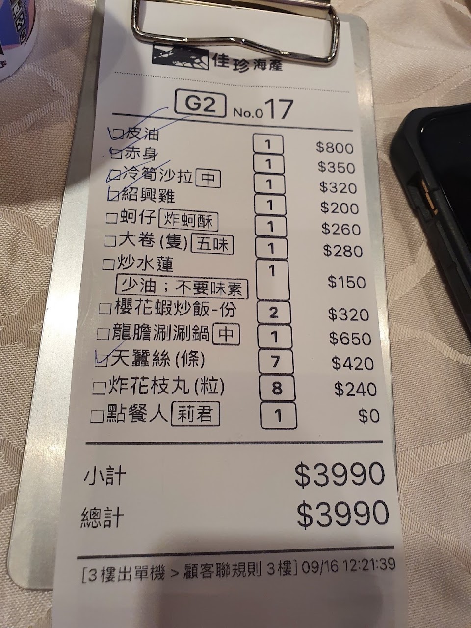 在東港的佳珍海產店用餐的體驗令我留下深刻印象。這家海鮮餐廳以其新鮮的海產和美味的料理聞名,為我帶來了一場美食之旅。