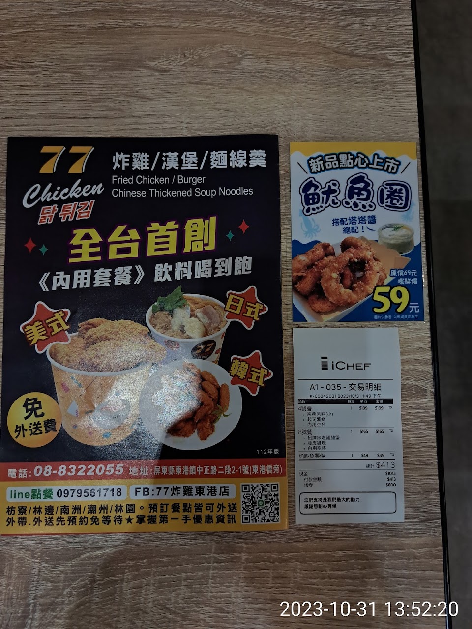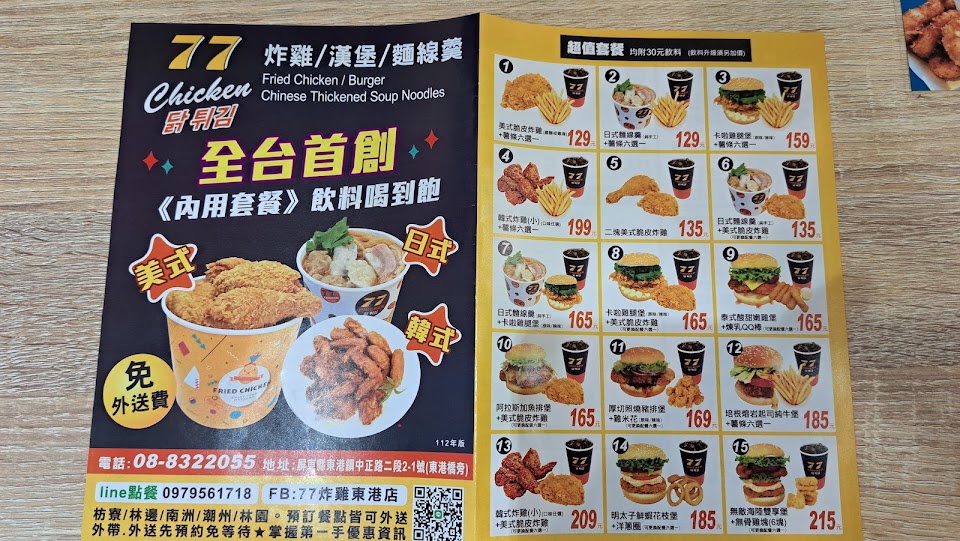 2024最新在地推薦餐廳的菜單_77炸雞東港店的菜單、圖片