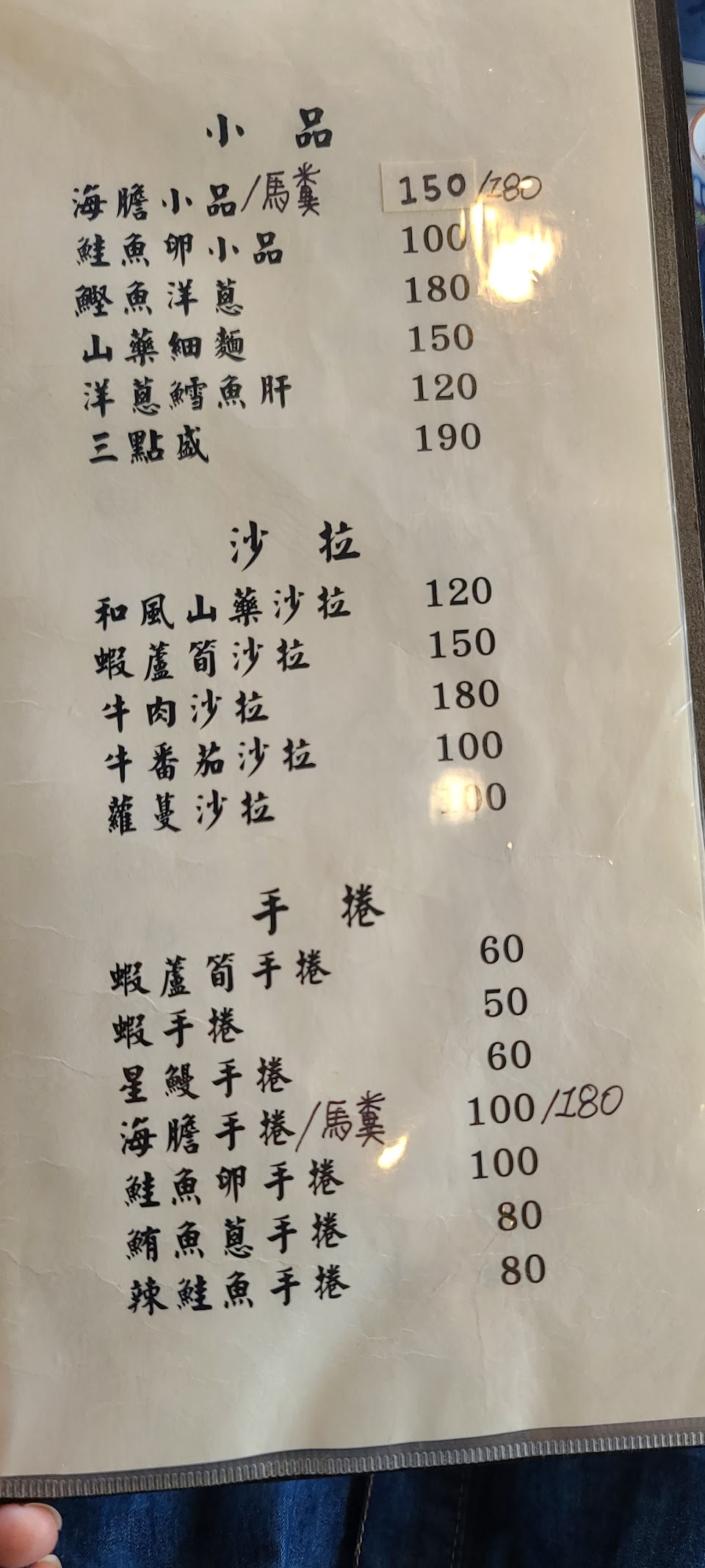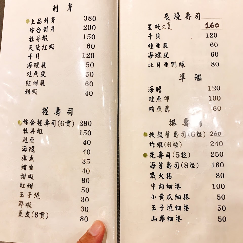 壽司出餐速度蠻快的,食材美味,只是份量少,除了照片上的餐點還有點了手捲,大約一個人$400-500左右..但吃不飽,就會覺得價格稍偏高