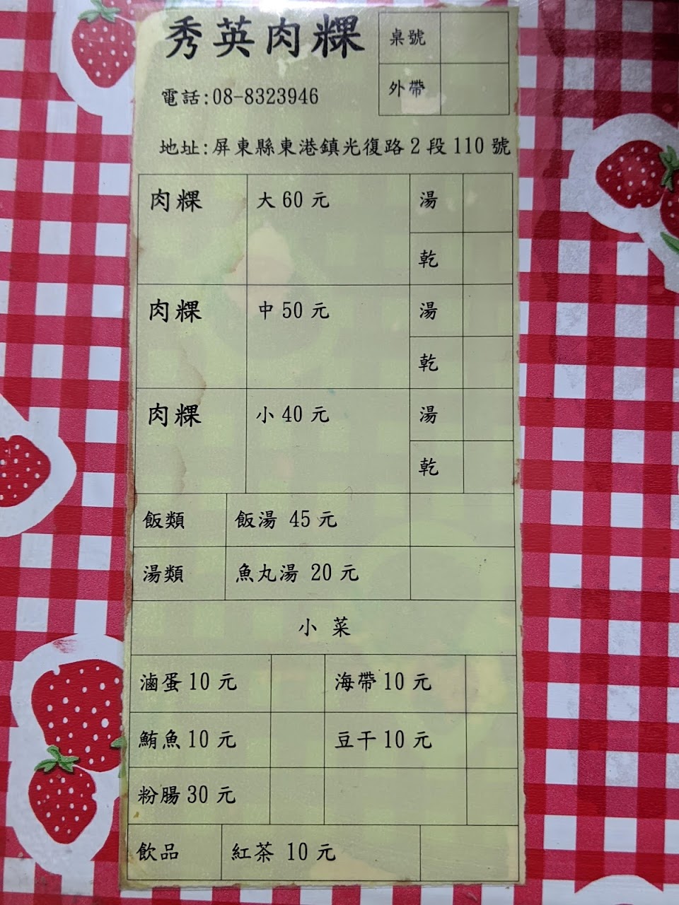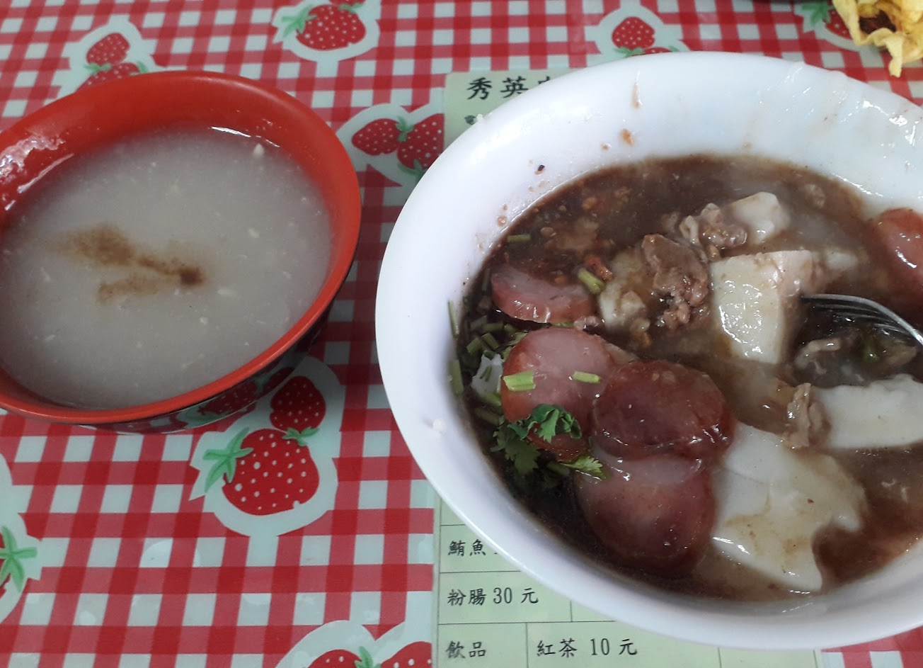 特地起個大早,前往網路上推薦的在地美食:秀英肉粿! 抵達時,沒有什麼人,年輕的老闆娘非常親切的招呼,我點了乾肉粿及湯肉粿。 非常期待網路上介紹的美味,但是我失望了!