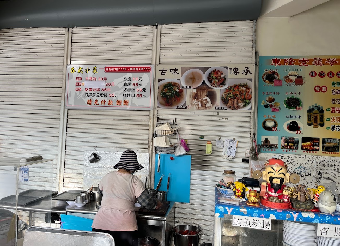 鮪魚粉腸很特別,肉粿吃不習慣。應該是在隔壁煮的,地上有鳥在偷吃,不是很衛生