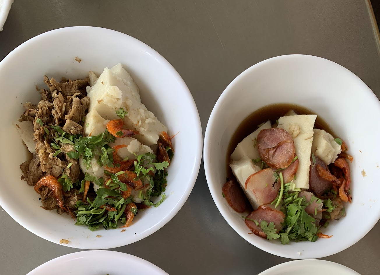 肉粿有分乾的和湯的,乾的會多附一碗湯可以品嘗兩種口感,湯的蒜味非常濃喝起來很順口,肉粿口感也很棒,是來到東港必吃特色小吃之一。