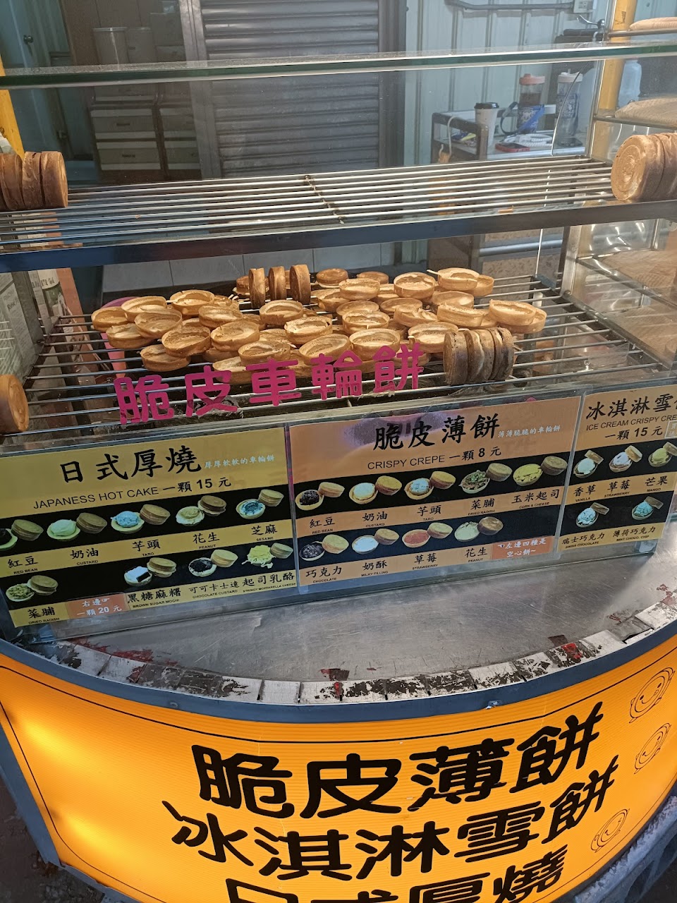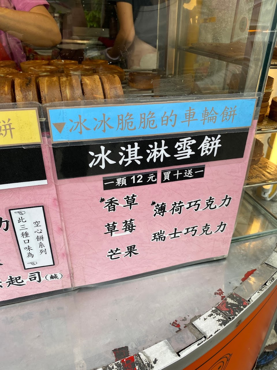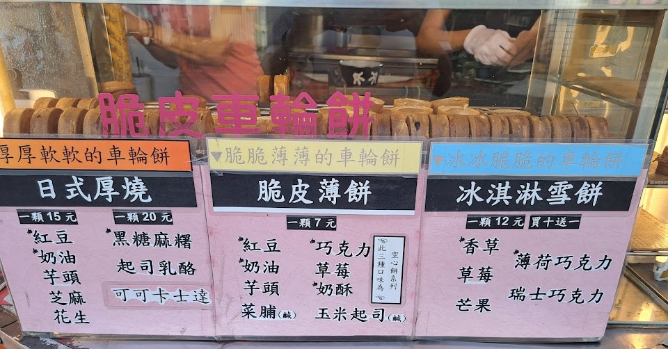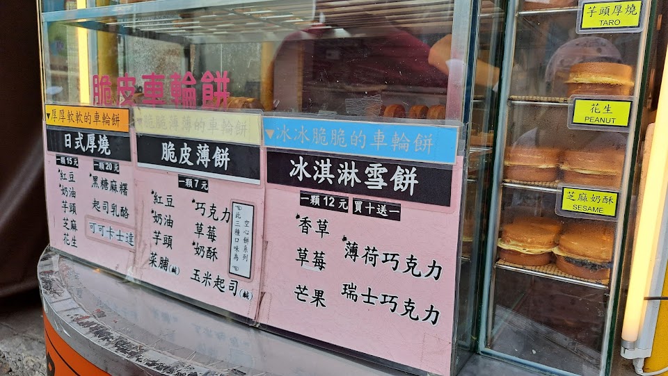 車輪餅有脆皮的,也有內餡飽滿的,還有冰淇淋口味的!!