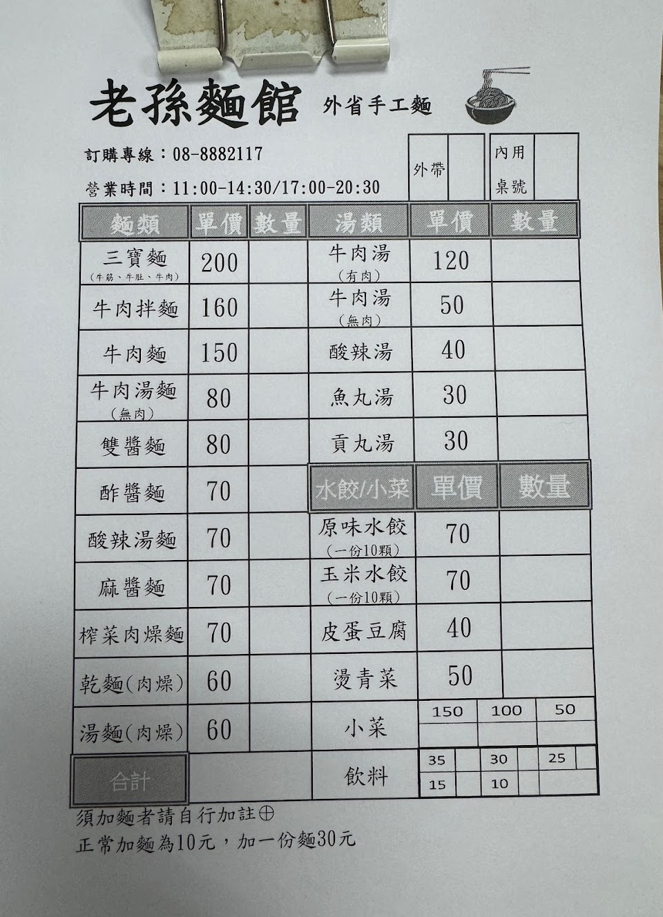 2024最新在地推薦餐廳的菜單_老孫麵館的菜單、圖片
