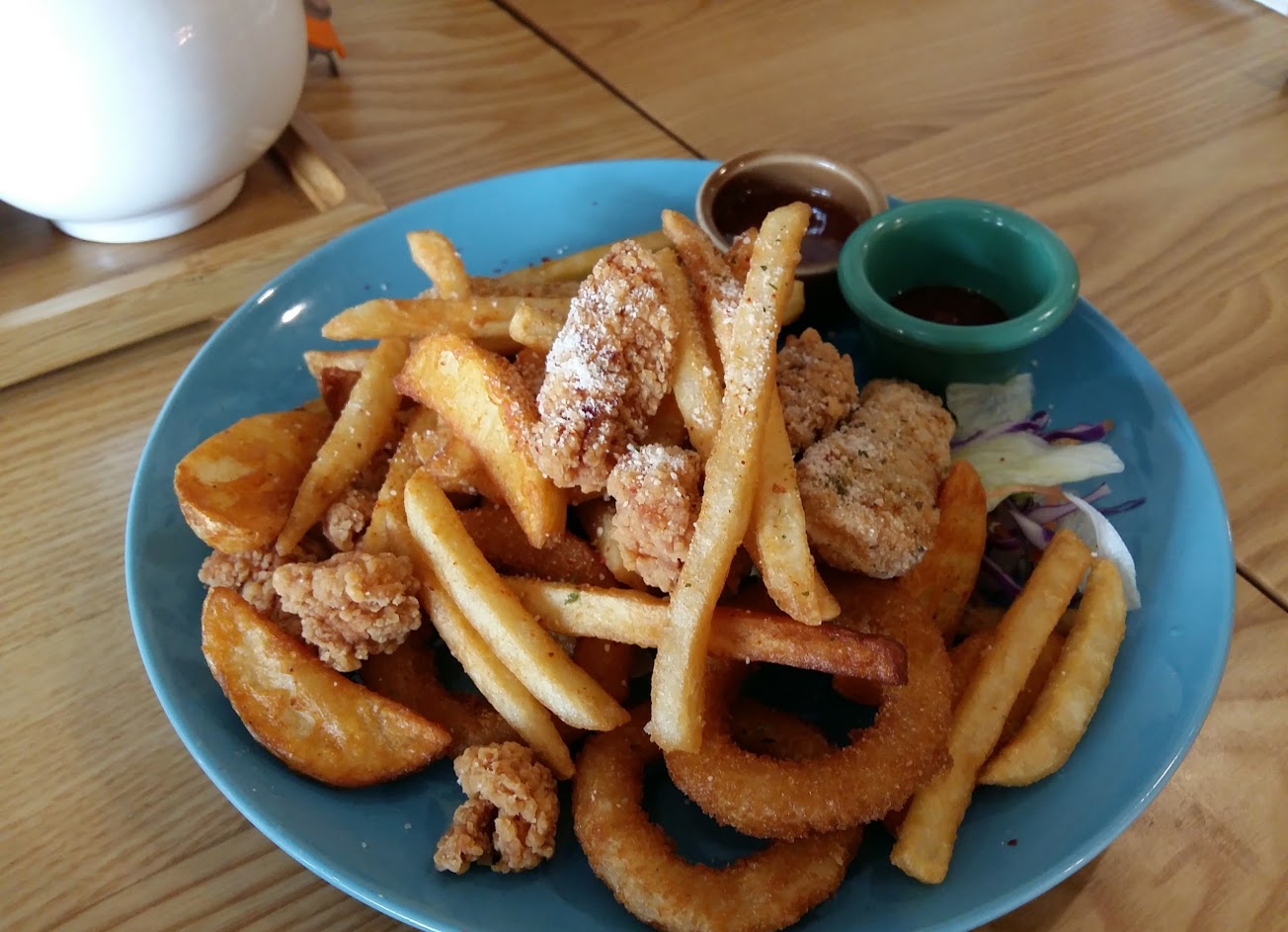 餐點普通,擺設有點簡陋。有毛小孩會在你餐桌下走動。