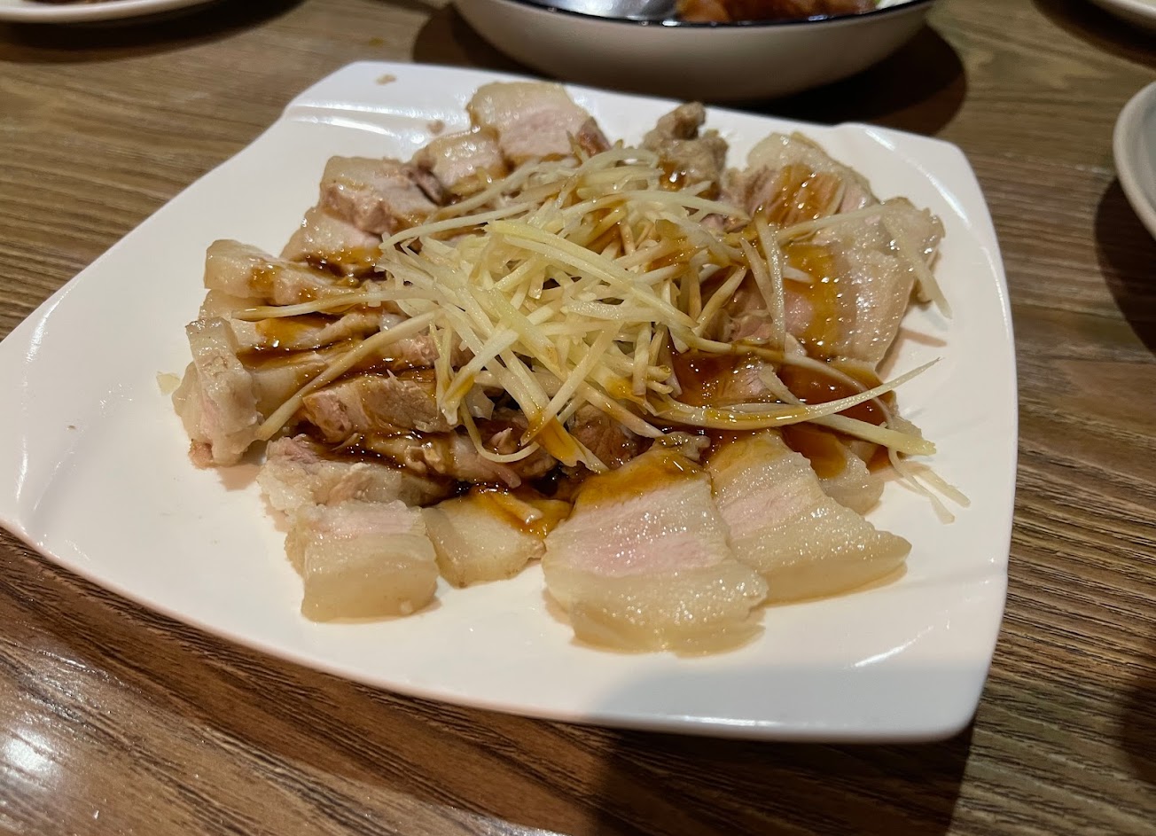 湯的大小塊、讓我一點也不喜歡)蒜泥白肉(肉可能並非當日、醬汁偏甜,吃1塊就不想再去吃第二塊)