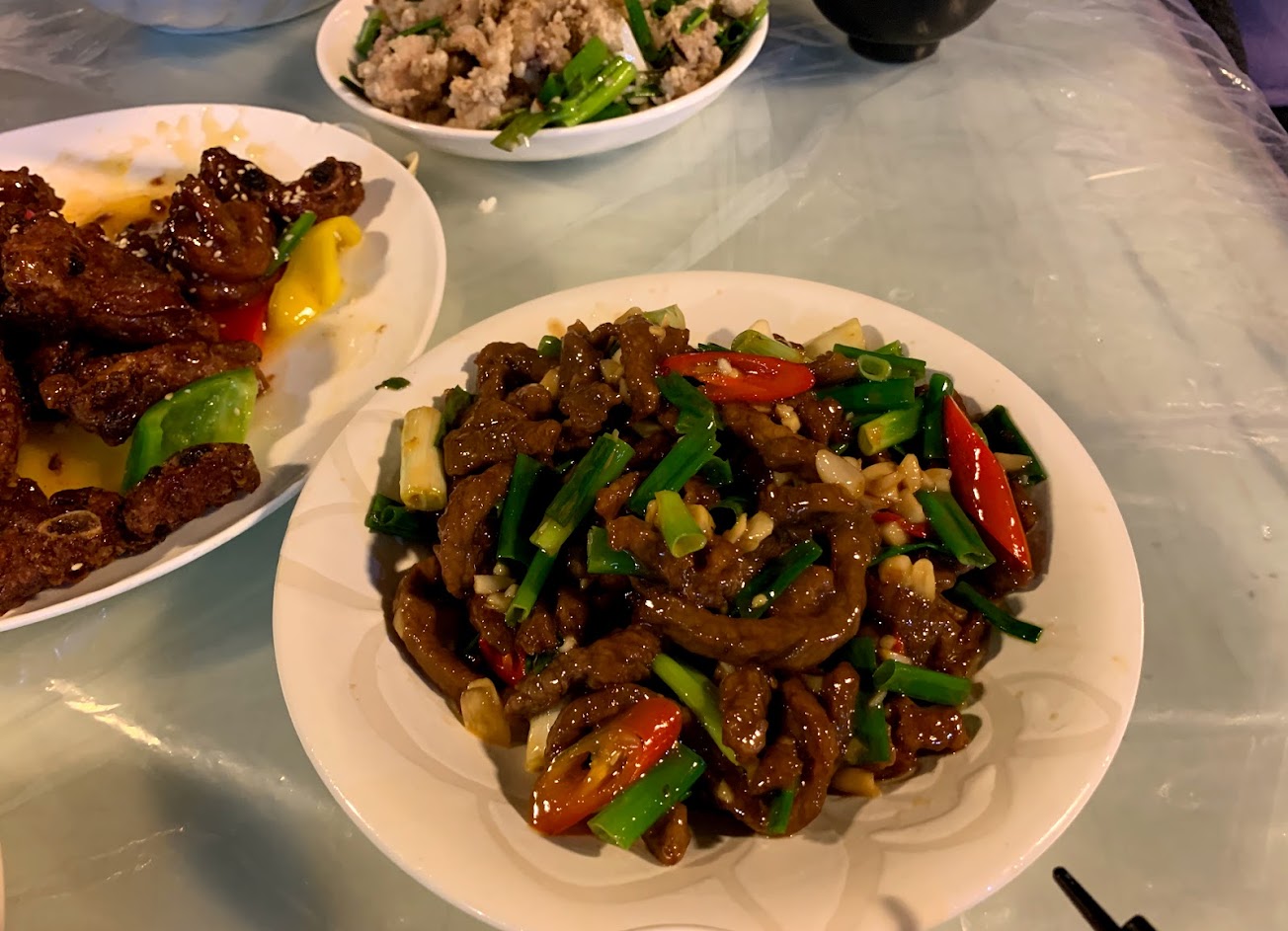 檸檬蛤蠣、蔥鹽軟絲、蔥爆牛肉,簡直美味。