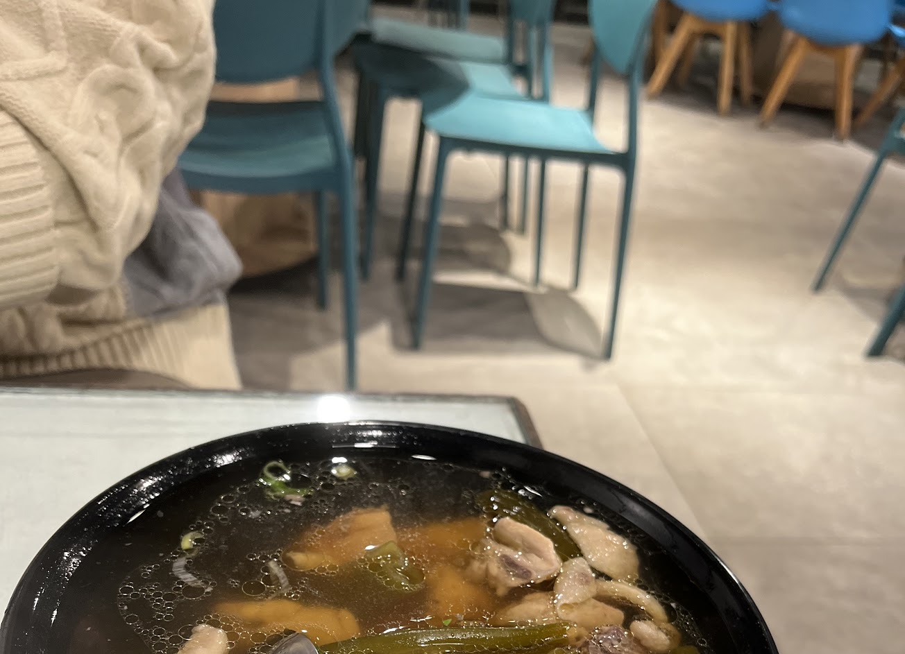 剝皮辣椒雞湯有點辣,蛤蠣讚?滿滿一碗