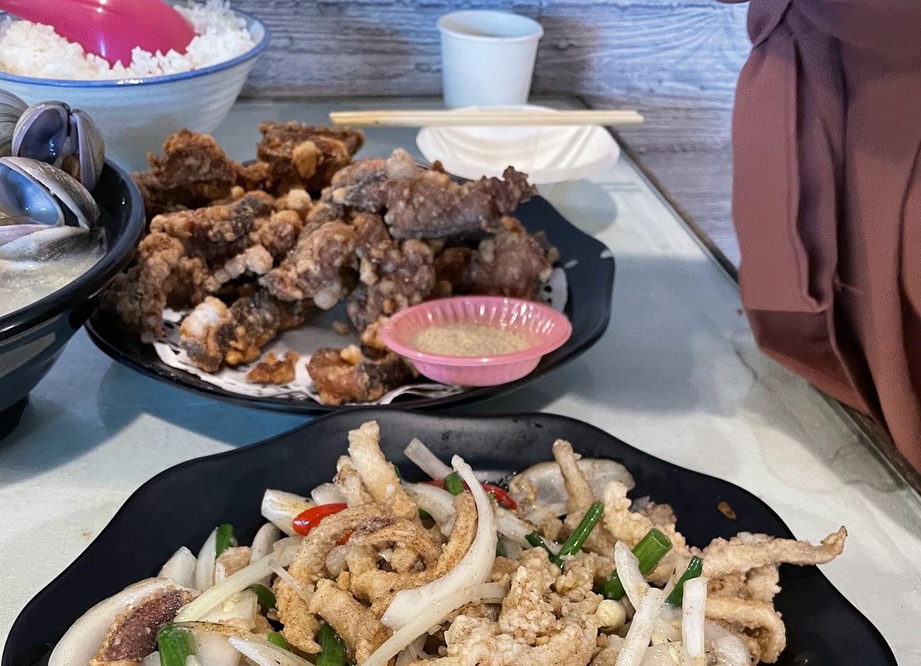 分量多 東西也好吃? 蛤蜊份量蠻大碗的 炸牡蠣也很多 …