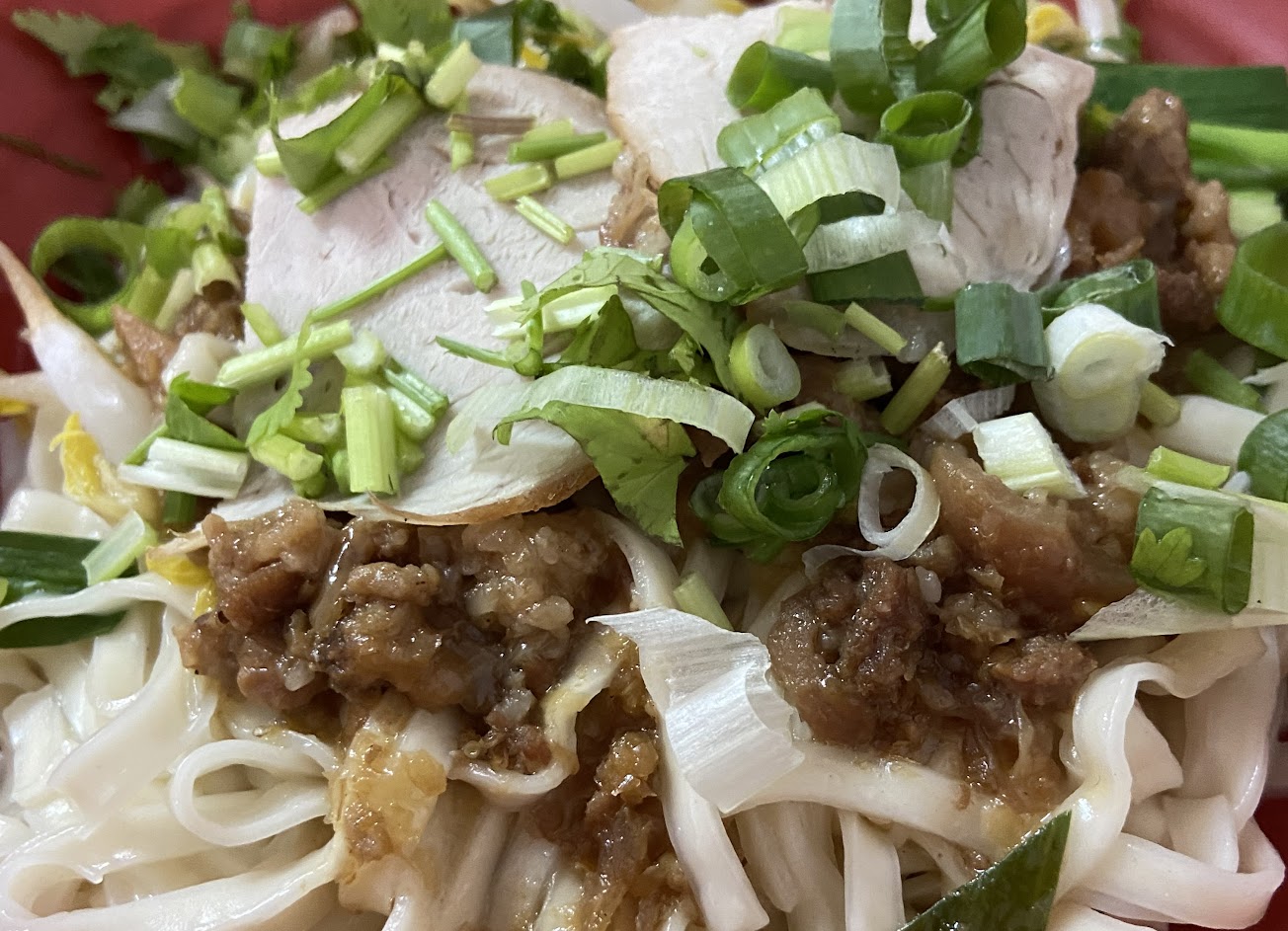 非常好的麵條,可選擇粿條或伊麵或米粉。除非你感到非常非常餓,否則不要點他們的大部分。添加一團辣椒醬以增加風味。你可以點一盤紅燒的東西,比如豆腐、豬耳朵、舌頭、腸子和雞蛋來搭配你的麵條。