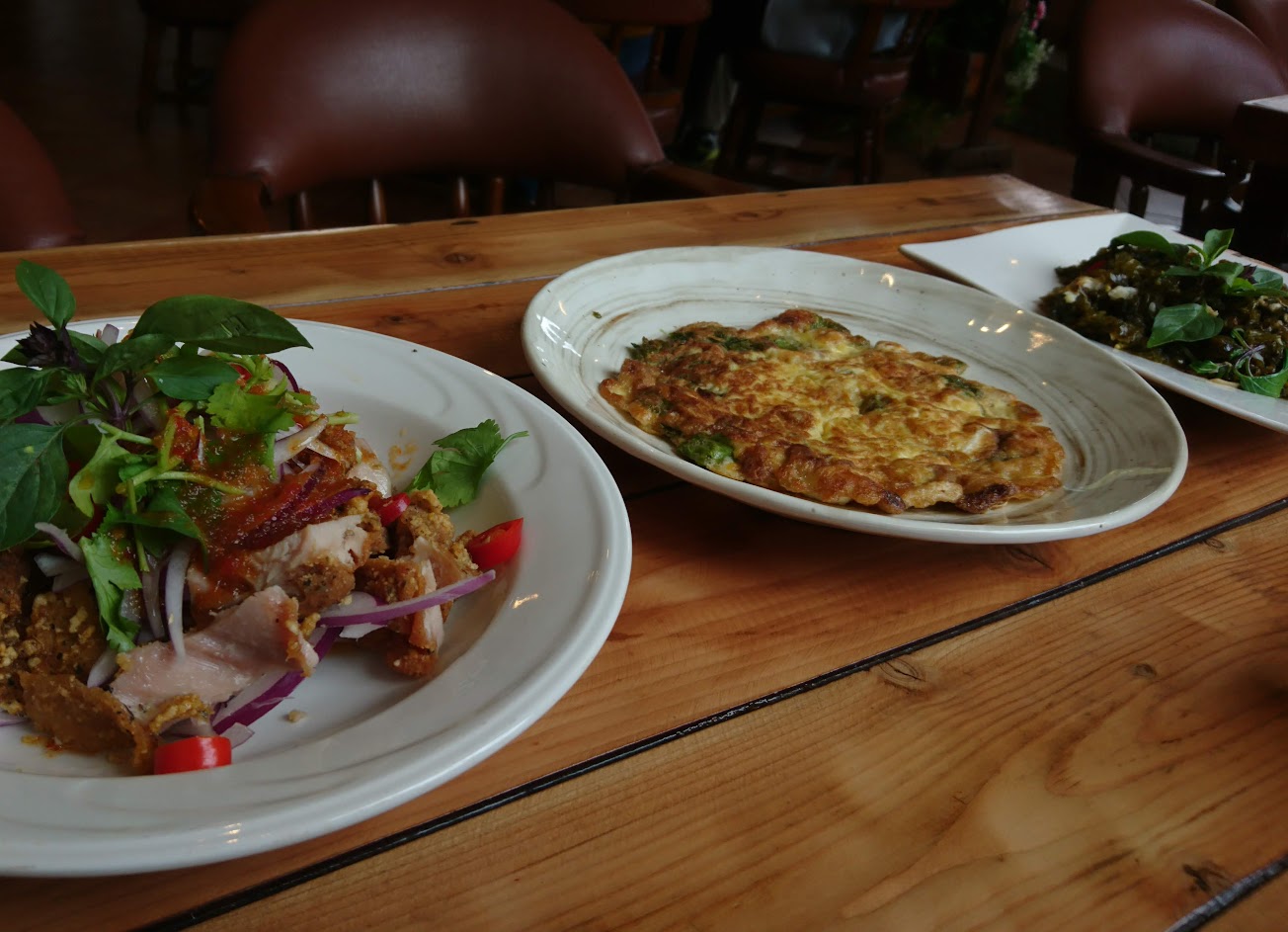 刺蔥烤魚、刺蔥鮭魚炒飯、鹽酥蝦、泰式椒麻雞沙拉