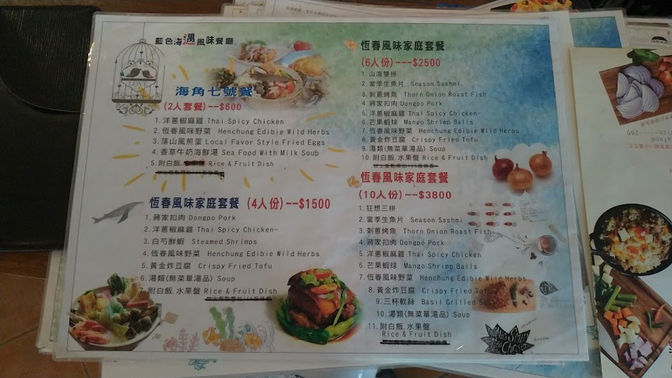 點了雙人套餐: 洋蔥椒麻雞 恆春風味野菜 落山風煎蛋 香草牛奶海鮮湯 都好吃!而且這樣$600很划算
