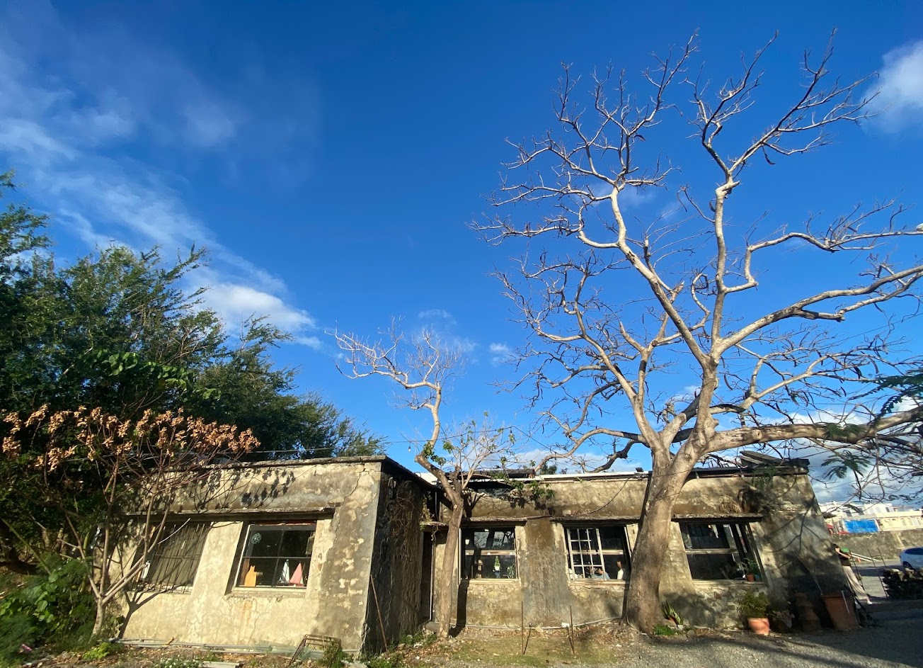老宅改建的玻璃屋和門口豔麗奪目的鳳凰花有一種違和的美,露出的鋼筋鐵條,破碎的外牆和盛開的花碰撞出強烈衝突的美感,就跟他們家的食物一樣令人回味無窮?