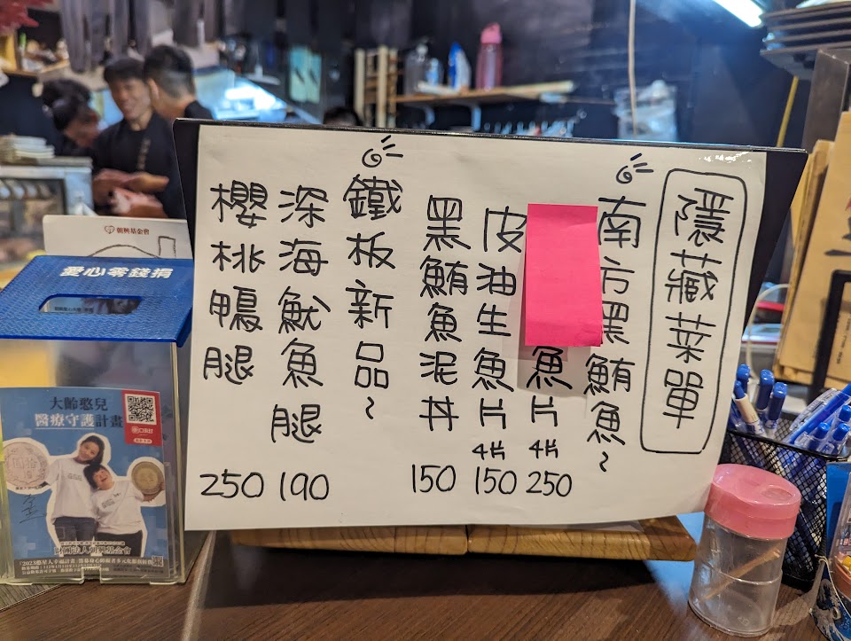 真的超級好吃,來恆春旅遊最滿意的就是這一餐。要形容的話,就是比連鎖的壽司及丼飯多了好幾種層次,鮭魚炙燒壽司入口即化。幸好來的時候有位置,到了餐期就開始要後位了。店內無付茶水,可以自行攜帶飲料;點餐的方式比較特別,是寫編號及份量,不過因為方便作業緣故不給加點,這點確實是可以體諒的。