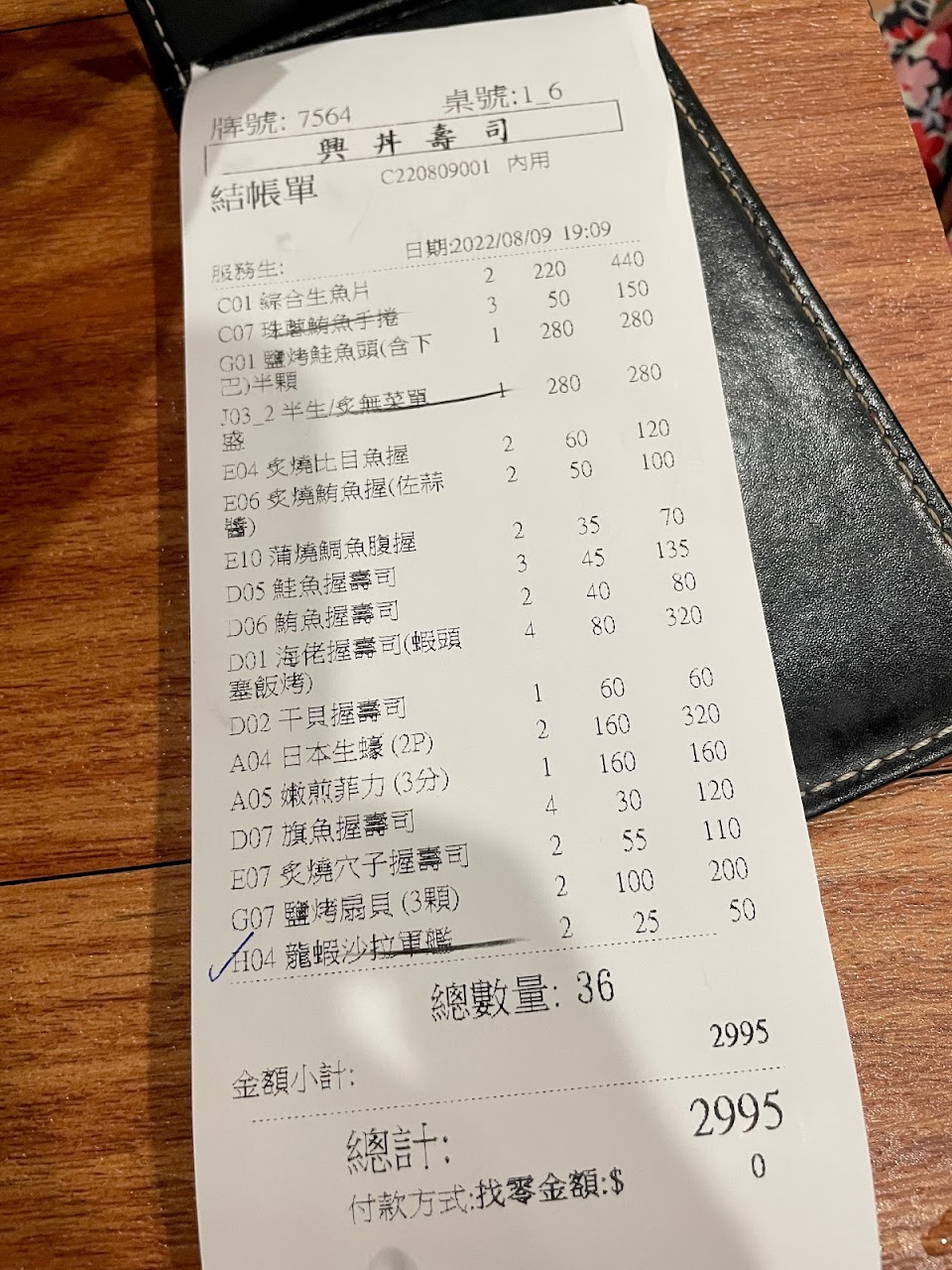 入內就坐後點餐是寫代號點餐,飯後結帳