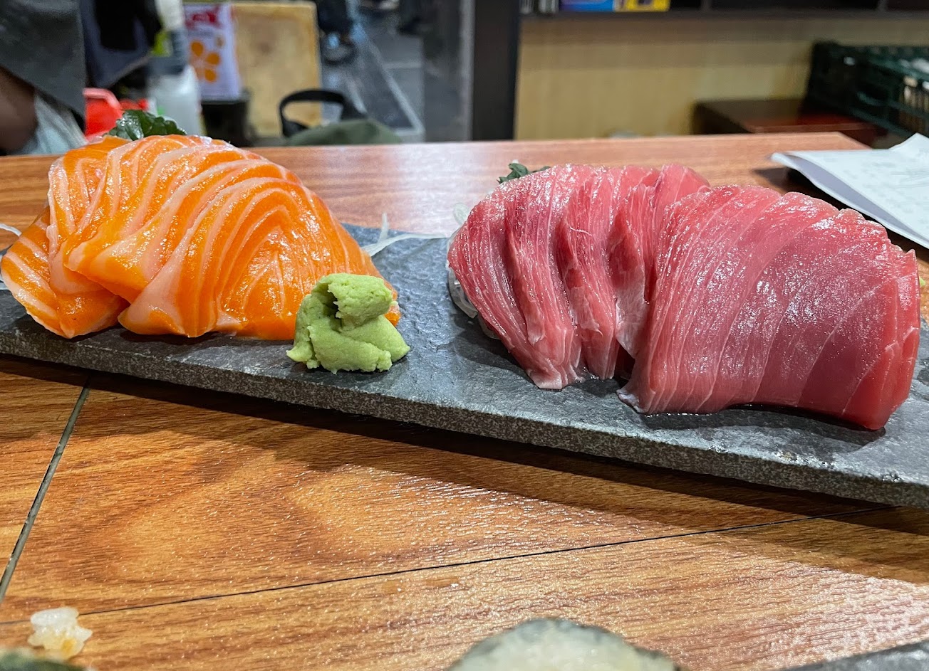皮脂黑鮪魚、鮭魚生魚片
